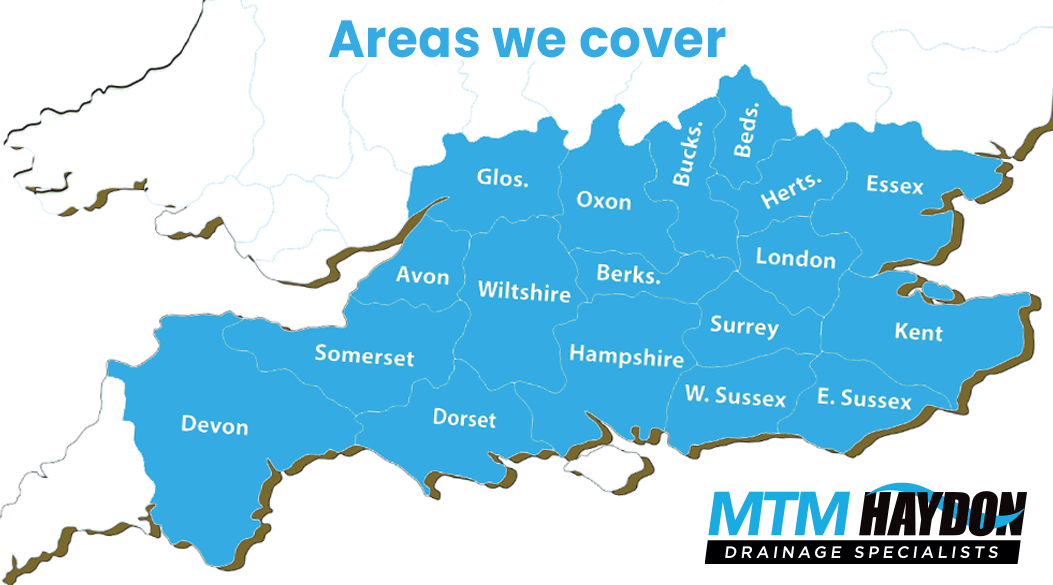 We are providers to domestic and commercial customers for all types of drainage service in southern England. We cover the following areas: Dorset, Wiltshire, Somerset, Devon, Hampshire, Sussex, Kent, Berkshire, Oxfordshire, Hertfordshire, Buckinghamshire, Surrey, Gloucestershire and Bristol.